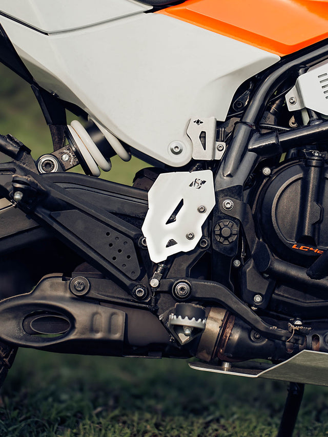 The Legundary Aluminium Master Cylinder Guard Silver for the KTM Adventure 390 X (2025 model), available at Bandidos pitstop is a must-have accessory for riders seeking enhanced protection and durability. Crafted from high-grade aluminium, this guard offers reliable defense against impact, debris, and accidental damage to your bike’s rear brake master cylinder. Its lightweight yet sturdy construction ensures it doesn’t add unnecessary bulk while providing maximum coverage. The sleek silver finish not only blends seamlessly with the bike’s rugged aesthetic but also resists corrosion for long-lasting performance. Designed specifically for the 2025 KTM Adv 390 it ensures a perfect fit and easy installation, making it ideal for both city riders and off-road adventurers.