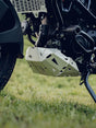 The Legundary Aluminium Bash Plate Silver for KTM Adventure 390 X (2025 model), available at Bandidos pitstop is designed to provide premium protection and style for serious adventure riders. Crafted from lightweight yet durable aluminium, this bash plate offers exceptional resistance against impacts from rocks, debris, and rough terrain while keeping the bike's weight in check. The sleek matte silver finish not only enhances the rugged aesthetic of the bike but also ensures resistance to corrosion and harsh weather conditions. Engineered specifically for the KTM Adv 390 X 2025 it features precision-cut contours and strategically placed vents for optimal airflow and efficient engine cooling. Whether you're riding through challenging off-road trails or navigating urban roads, this bash plate delivers reliable underbody protection without compromising performance or looks.