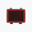The NGAGE Hyper Flow Air Filter for the KTM Adventure BS6 200/250/390 series is an aftermarket performance upgrade designed to replace the stock air filter with a high-flow cotton-gauze unit. Its multi-layer, porous cotton-gauze media is built to allow significantly greater airflow compared to standard paper or foam filters promoting improved combustion and throttle response under acceleration or load. At the same time, its tightly woven gauze and pre-oiled construction trap fine dust, pollen, and road debris, safeguarding the engine from harmful particulates a feature especially valuable for highway runs or off-road excursions typical for Adventure bikes. Unlike disposable filters, the Hyper Flow air filter is washable and reusable you can periodically clean, re-oil and reinstall it, offering long-term savings and environmental benefits. Furthermore, it’s engineered as a direct stock-replacement for the Adventure 200/250/390 airbox, meaning installation requires no special modifications.