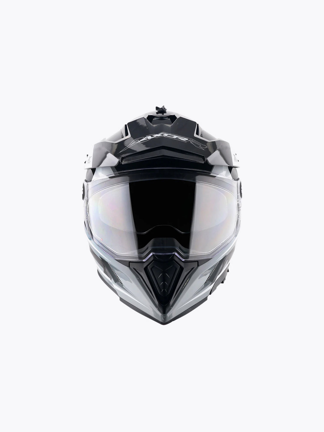 The Axor X -Cross D/V Flagstaff Nardo Grey Black is built for adventure riders who demand both style and rugged performance. Designed with a striking Nardo Grey and Black color scheme, this helmet not only looks aggressive but also provides top-tier protection for off-road and trail riding. Constructed from high-impact ABS material, it ensures durability while maintaining a lightweight feel. The extended peak visor shields against sun glare and debris, while the integrated dual-visor system allows for quick adaptability in varying light conditions. Equipped with a dynamic ventilation system, it keeps riders cool during intense rides, and the secure double D-ring fastener ensures a snug fit. Whether tackling rough terrains or cruising through the wild, the Axor X-Cross D/V Flagstaff Helmet, available at Bandidospitstop, is the ideal companion for fearless riders.