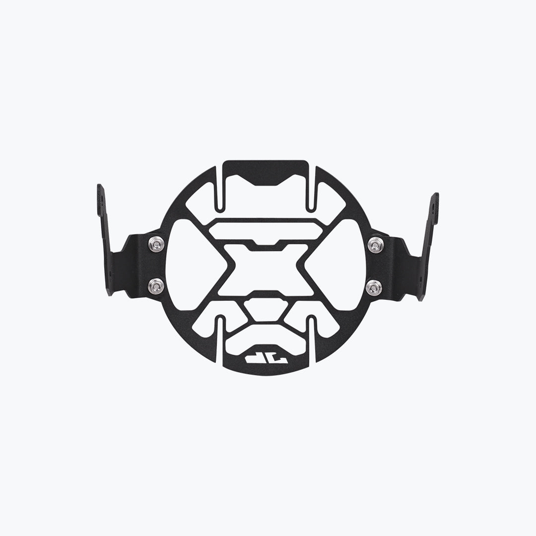 Crafted specifically for the JB Racing X Pulse 210 Halox Headlight Grill is built from robust mild-steel and finished in a stealthy black powder coating, giving your bike both protection and a refined aesthetic. The design acts as a guard for the headlamp unit shielding it from flying stones, debris, and incidental knocks while still maintaining full light output and clear visibility. With its precise fit and bolt-on installation it’s a practical upgrade for riders who use the Xpulse 210 on rough roads or in daily commuting, adding both durability and style in one accessory.