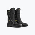 The Orazo Ibis Trail V Water-Resistant Boot (Black), available at Bandidos pitstop, is a rugged trail boot built for durability and comfort in mixed riding conditions. Rising about 12 inches from the sole, the boot features high-abrasion leather with water-resistant construction to handle light rain and splashes. Its Velcro fastening and flex points at key joints help make walking more comfortable, while built-in protections like a steel toe cap, shin guard, and ankle support keep your feet safe from impacts and debris. The sole is anti-slip, and heel impact zones include shock absorption. Also equipped with reflective details at the heel side and an anti-fungal cushioned in-sock, this boot offers a well-rounded blend of safety, comfort, and utility for trail or urban use.