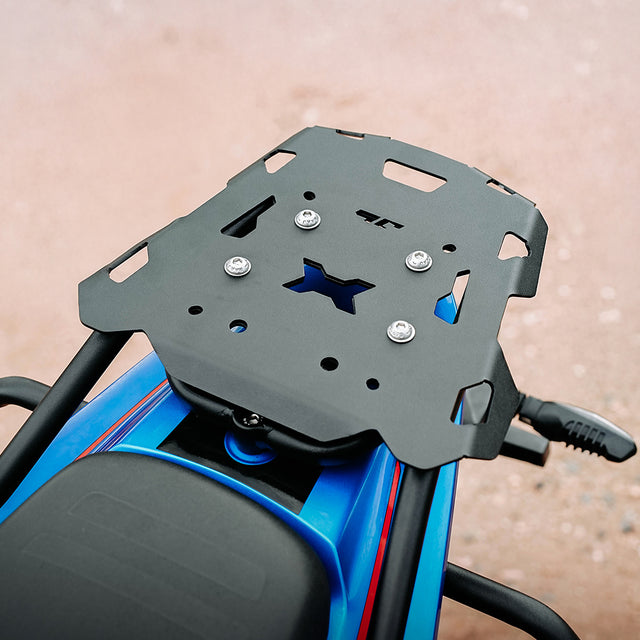 The JB Racing X Pulse 210 Kargo Luggage Carrier Black from Bandidos pitstop offers a robust luggage‐carrying solution tailor-made for the Hero Xpulse 210. Crafted from mild steel and finished in a sleek black powder-coating, this carrier plate is built to withstand demanding use while maintaining a clean, integrated look on your bike. it’s designed for riders who need to mount top-boxes or duffel bags without drastic modifications to the standard rear rack. By installing this accessory, you significantly boost the luggage carrying capability of your Xpulse 210, making it a smart upgrade for touring enthusiasts or everyday commuters who need extra storage space.