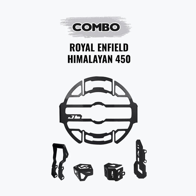 Equip your JB Racing Himalayan 450 with the ultimate combination of accessories, available now at Bandidos Pitstop. This comprehensive package includes a range of accessories carefully curated to enhance both the performance and aesthetics of your motorcycle. From headlight grill and GPS mount for added protection to oil cap and master cylinder guard for increased functionality, each component is designed to withstand the rigors of adventure riding while elevating your riding experience to new heights. With easy installation and compatibility tailored specifically for the Himalayan 450, these combo accessories seamlessly integrate into your bike's design, ensuring a perfect fit and reliable performance.