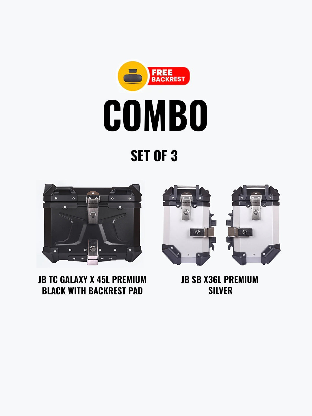 Set Of 3 Combo Of JB TC Galaxy X 45L Premium Black With Backrest Pad + JB SB X36L Premium Silver