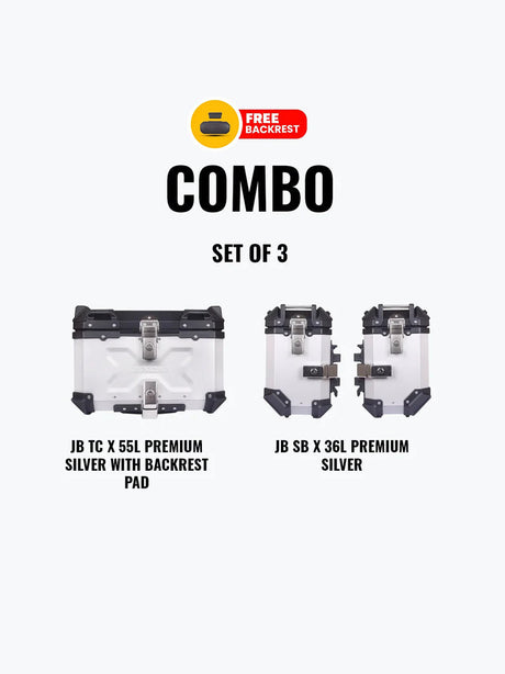 Jb Racing Set Of 3 Combo OF JB TC X 55L Premium Silver With Backrest Pad + JB SB X36L Premium Silver