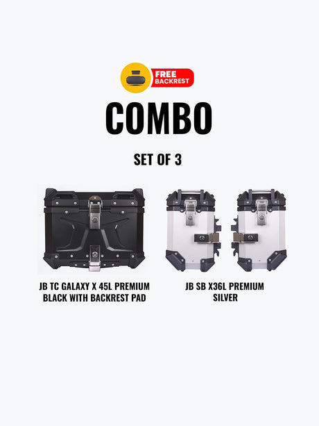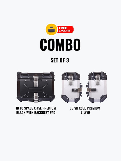 Jb Racing Set Of 3 Combo Of JB TC X 65L Premium Black With Backrest Pad + JB SB X 36L Premium Silver