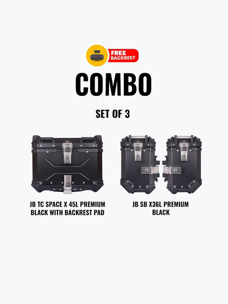 Set Of 3 Combo Of JB TC Space X 45L Premium Black With Backrest Pad + JB SB X36L Premium Silver