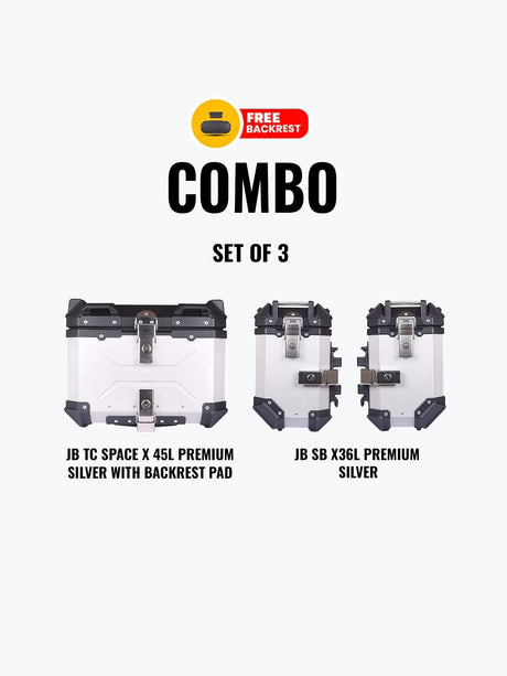 Jb Racing Set Of 3 Combo Of JB TC 45L Silver Premium With Backrest Pad + JB SB X 36L Premium Silver