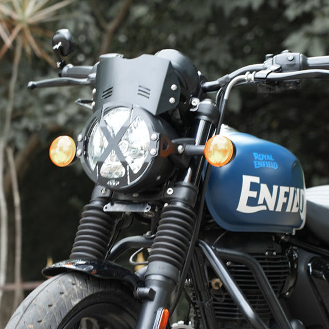 Elevate your Hunter 350’s rugged appeal with the Legundary Hunter Aegis Metal Visor, now available at Bandidos Pitstop. Built for riders who demand both protection and bold aesthetics, this high-quality metal visor adds a muscular edge to your motorcycle while shielding you from wind and debris. Its precise fitment for the Royal Enfield Hunter 350 ensures a seamless integration with your headlamp unit, enhancing both style and functionality. With a sleek matte finish and durable construction, the Aegis Visor is the perfect blend of performance and visual impact—crafted for those who ride with attitude.