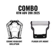 The Legundary Headlight Grill and GPS Mount Combo is a premium accessory package crafted to enhance both protection and functionality for the 2025 KTM Adventure 390. Available at bandidos pitstop. The black and silver headlight grill, made from tough mild steel and aluminium, offers rugged defence for your bike headlight guarding it against stones, debris, and impacts encountered on highways, gravel roads, and trails while maintaining optimal airflow and visibility. Complementing this is the black and silver GPS mount, engineered from the same durable materials to provide a secure, vibration-resistant platform for your navigation device, keeping your route clearly in view without distraction. Together, this combo not only boosts your motorcycle utility and resilience but also adds a cohesive, adventure-ready aesthetic that aligns with the KTM spirited character. Whether you’re navigating twisty backroads or touring long distances, this set delivers dependable performance and confidence-inspiring upgrades that elevate your ride experience.