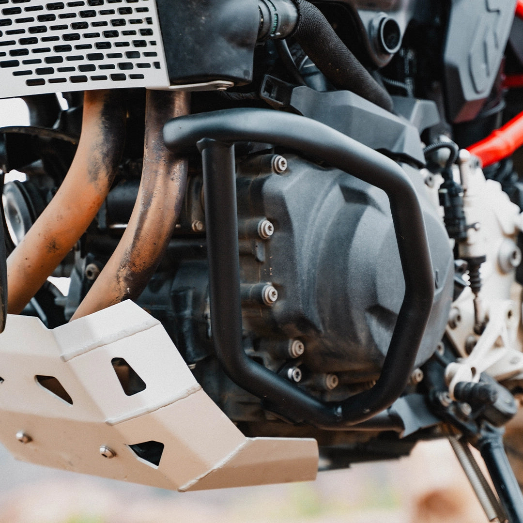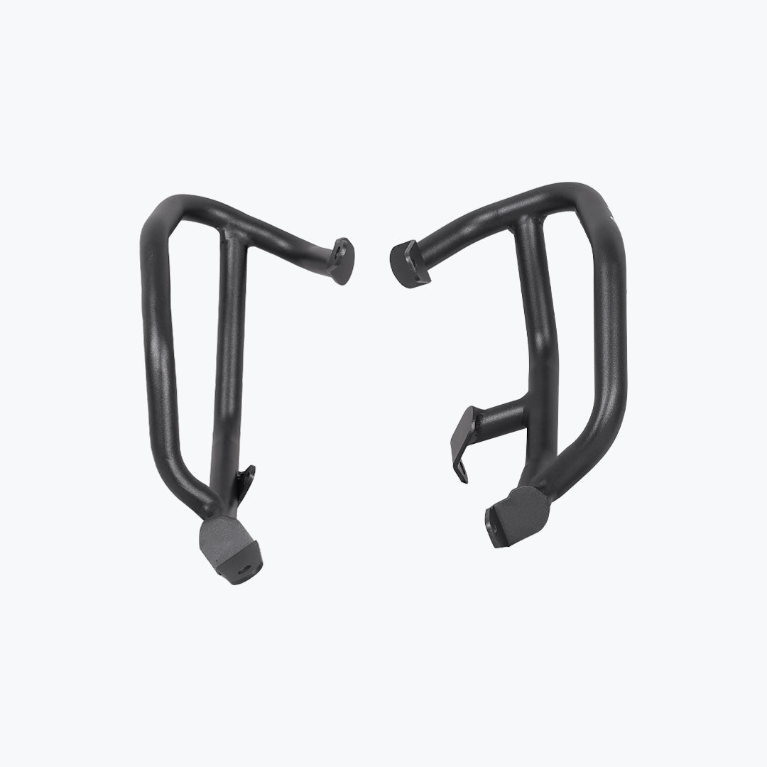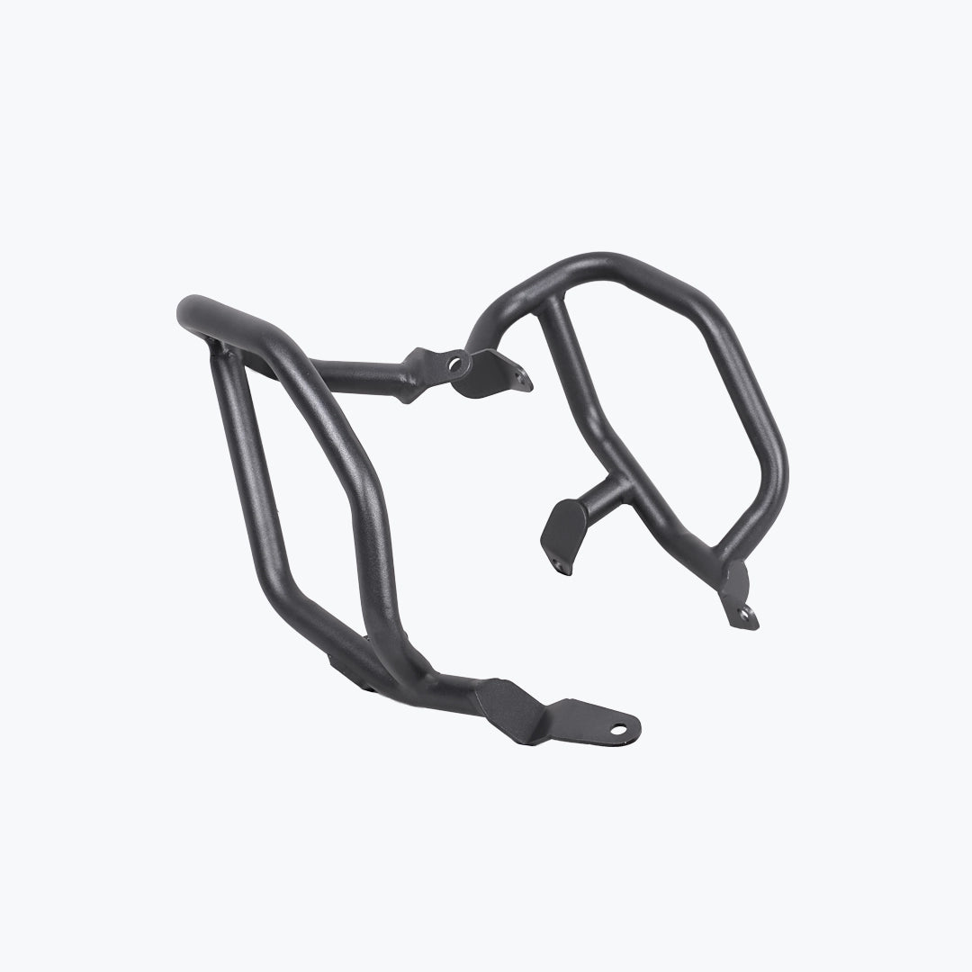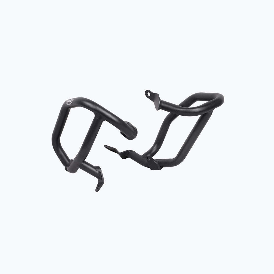 The Legundary Bellator Crash Guards in black mild steel are robust, purpose-built protective accessories designed to safeguard your BMW F 900 GS during everyday rides and adventurous excursions alike. Available at bandidos pitstop. Constructed from high-strength mild steel with a rugged black powder-coated finish, these crash guards form a strong barrier around the engine, frame, and vulnerable bodywork to help absorb and deflect impact forces in the event of a tip-over or low-speed fall. Their precision-engineered tubular design seamlessly complements the F 900 GS aggressive adventure styling while maintaining ground clearance and handling characteristics. The Bellator guards provide both functional protection and visual confidence giving riders peace of mind on city streets, highways, and challenging off-road terrain. Whether you’re commuting daily or tackling multi-day tours, these crash guards help minimize repair costs and enhance rider confidence with durable, dependable coverage.