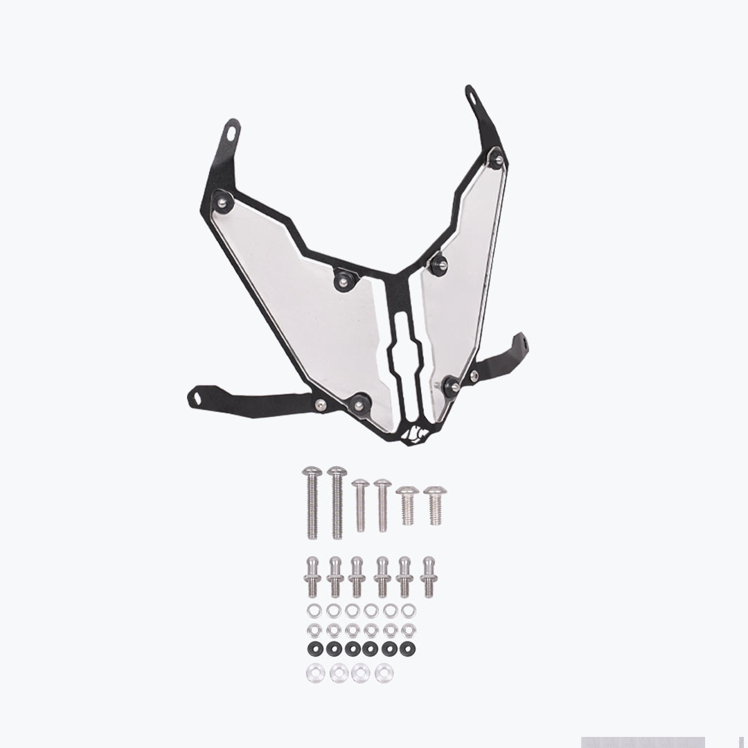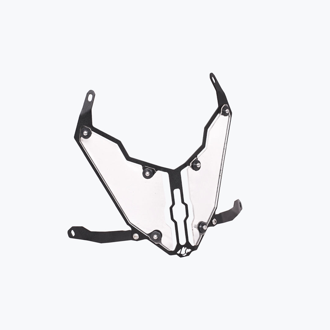 The Legundary Oculus Headlight Shield in black mild steel is a rugged and practical accessory crafted to protect the headlight of your Honda XL750 Transalp from stones, debris, and impacts encountered during on-road and off-road riding alike. Available at Bandidos pitstop. Made from sturdy mild steel with a corrosion-resistant black powder-coated finish, this shield forms a strong protective barrier without significantly obstructing the headlight beam helping maintain visibility while preventing costly lens damage. Its precision-engineered design fits seamlessly around the Transalp headlight contours and installs easily with a bolt-on fit, providing dependable durability and enhanced protection in varied riding conditions. Beyond functionality, the shield adds a purposeful, adventure-ready look to the bike’s front end, making it a smart upgrade for riders who want both increased protection and style confidence on every journey.