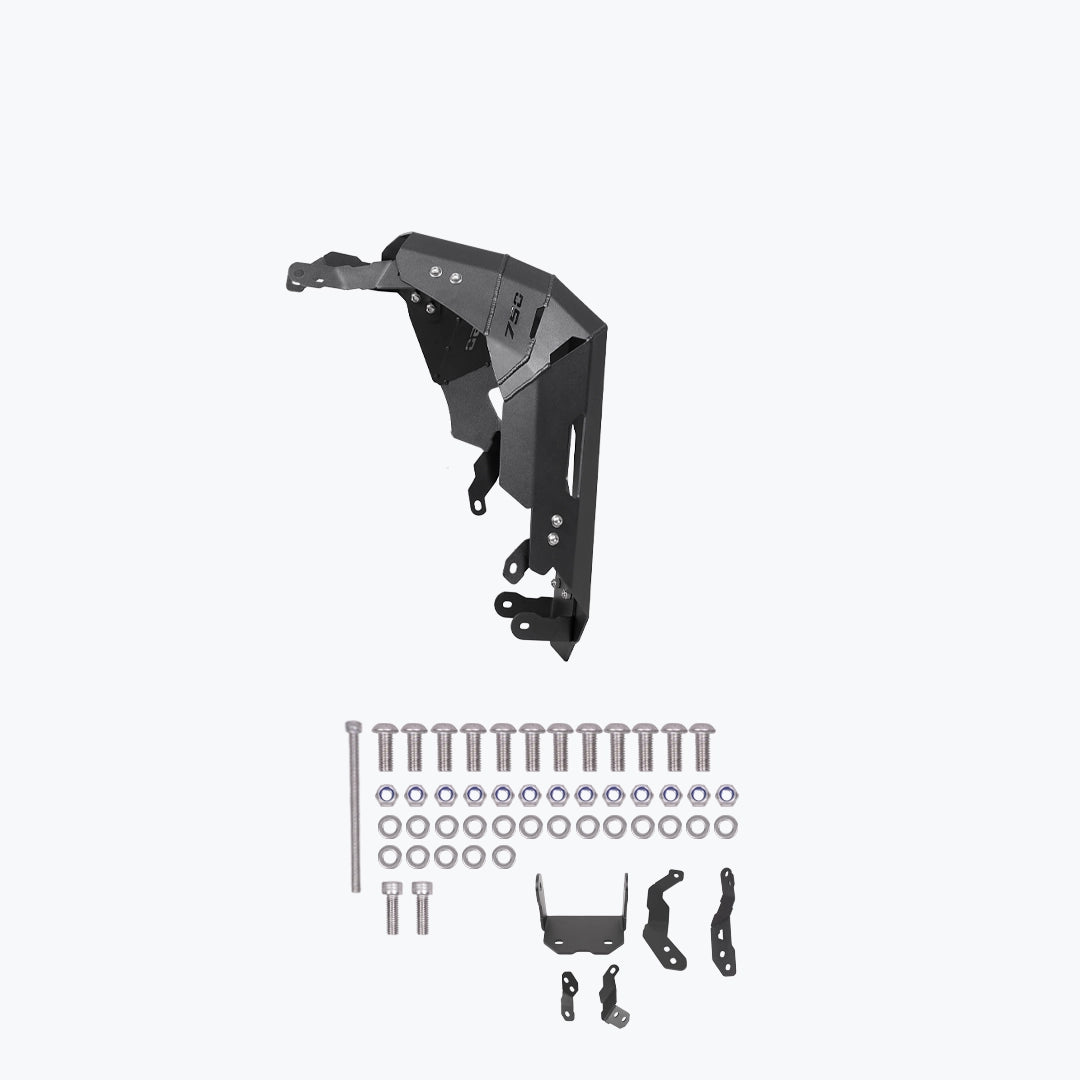 The Legundary Vambrace Bash Plate in black aluminium is a rugged and thoughtfully engineered protective accessory designed to safeguard the underside of your Honda XL750 Transalp from rocks, debris, and impact hazards encountered on road and trail alike. Available at Bandidos pitstop. Crafted from high-quality, lightweight aluminium with a corrosion-resistant black finish, this bash plate provides robust defence for vulnerable components such as the engine sump, lower frame, and skid areas all without significantly compromising ground clearance or handling. Its precision-formed profile ensures optimal coverage and durability, while the bolt-on fitment integrates cleanly with the Transalp chassis, making installation straightforward. Whether you’re navigating rough terrain on adventures or rolling through city streets, the Vambrace Bash Plate gives riders added confidence by reducing the risk of costly underbody damage and enhancing the bike rugged aesthetic with a premium, adventure-ready look.