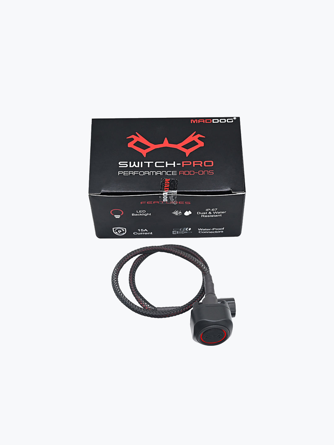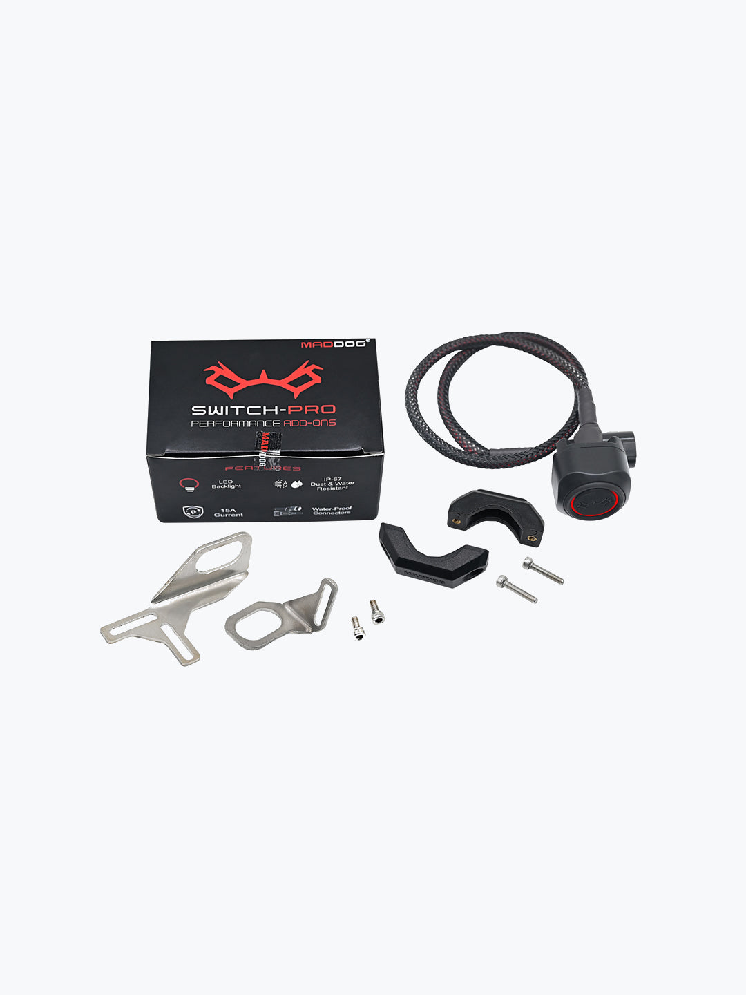Maddog Switch Pro is a plug-play accessories for all the auxiliary and ancillary electrical equipment's for motorbike . With a dual mounting option and backlight.