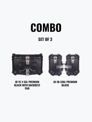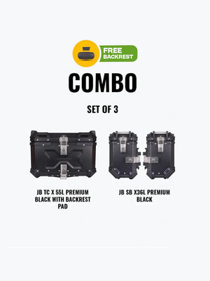 Jb Racing Set Of 3 Combo Of JB TC X 55L Premium Black With Backrest Pad + JB SB X36L Premium Black