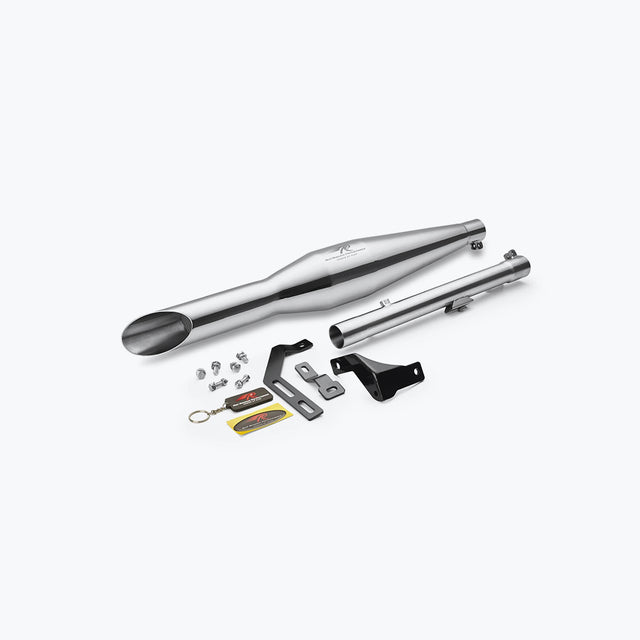 Introducing the Red Rooster Performance Rumbler Ace Exhaust in a striking Chrome (Polish) finish, available at Bandidos pitstop. specially crafted to elevate your Royal Enfield biking experience. Meticulously designed and rigorously tested, this exhaust ensures a seamless flow, granting your bike a remarkable 20% boost in performance. Crafted from top-tier SS304 stainless steel, this exhaust guarantees unmatched durability and rust-free performance. Say goodbye to the limitations of traditional glass wool, as the Red Rooster Rumbler Ace boasts ceramic wool, offering superior thermal resistance for an unparalleled riding experience. With a lifetime material warranty, you can ride with complete peace of mind. Upgrade your bike's performance and style by swapping out your factory exhaust with the Red Rooster Performance Rumbler Ace. Get ready to revel in exhilarating rides like never before and immerse yourself in the authentic Royal Enfield thump with every rev as the Red Rooster Rumbler Ace enhances the iconic sound you love.