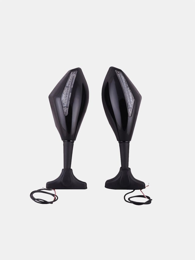 Presenting the all-new LED Indicator mirrors for motorcycles. The main feature of this motorcycle mirror is its simple and functional rearview mirror with in-built indicators. The LED indicators will help you be noticed while on the road riding. The mirrors are high quality that will give you better visibility to the rear thus also keeping you safe. Another specialty of this product is that it gives your motorcycle a premium big motorcycle look and feel. This is a universal mirror suitable for all faired motorcycles.Ā