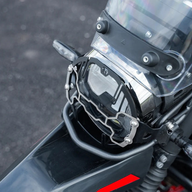 The MTQ Headlight Guard Mild Steel & Stainless Steel Combination Xpulse 210 2025 available at Bandidos pitstop, is a stylish and protective upgrade designed to shield your headlamp from rocks debris and off road hazards. Constructed with a durable mild steel frame and stainless steel grill it combines ruggedness with rust resistant longevity. The sophisticated black and silver dual tone finish enhances the X pulse 210 front end aesthetics while seamlessly integrating with the Xpulse 210 adventurous styling. Featuring a precision fit design, it bolts directly onto existing headlight mounts without drilling or modifications. Functional yet visually appealing this guard not only adds character to your ride but also provides essential protection, making it an ideal accessory for both daily commuting and off-road exploration.