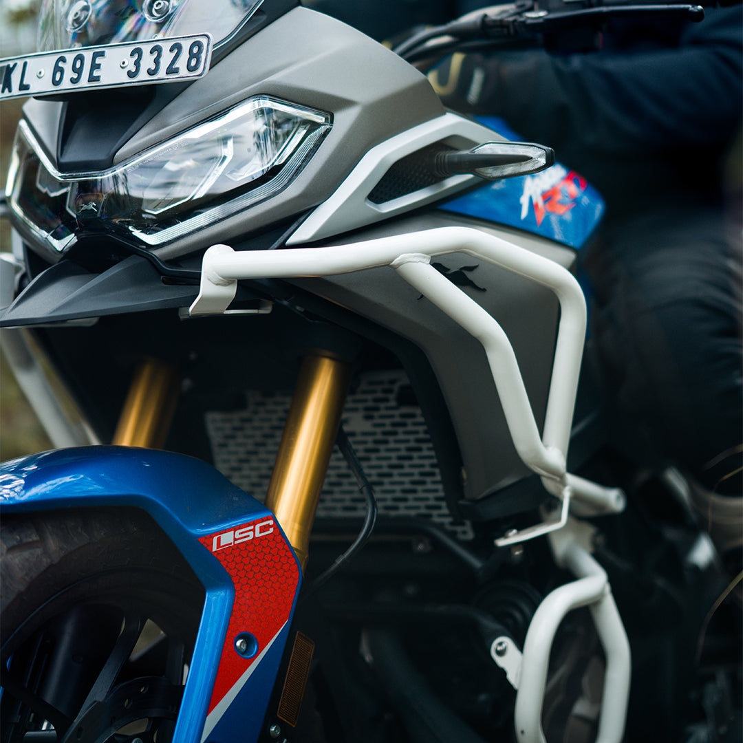 Upgrade your adventure protection with the TVS Apache RTX 300 Raptor Crash Guard Upper & Lower Set White engineered for riders who demand maximum durability with a premium finish. Designed specifically for the TVS Apache RTX 300, this dual-protection crash guard system ensures complete engine and body safety during off-road trails, touring, and unexpected impacts.