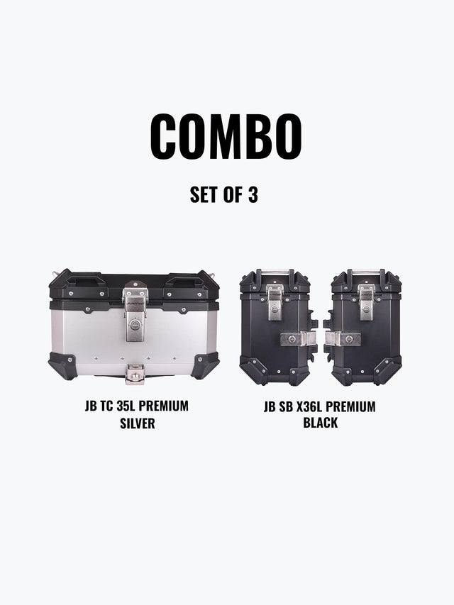 Experience the perfect blend of premium storage and sleek design with the Set of 3 Combo featuring the JB Racing Top Case 35L Premium Aluminium in Silver and JB Racing Side Box X36L Premium in Black from Bandidos Pitstop. This combo is meticulously crafted to offer both functionality and style, providing riders with an upgraded storage solution that enhances the overall aesthetics of their motorcycles. Elevate your storage capacity and ride in style.