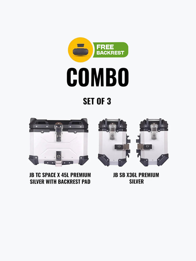 Jb Racing Set Of 3 Combo Of JB TC Space X 45L Premium Silver With Backrest Pad + JB SB X36L Premium Silver