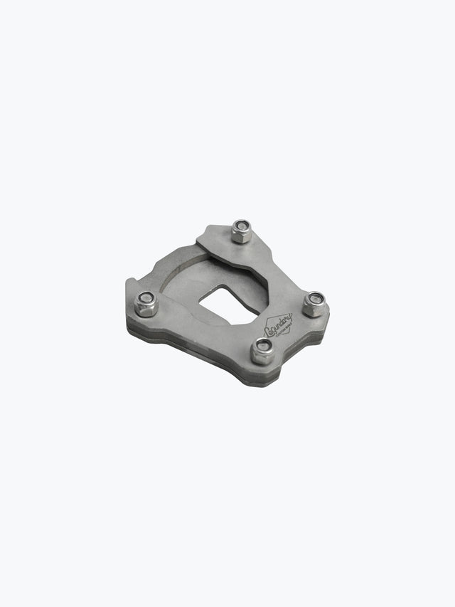 The Legundary Brogue Side Stand Base for the Bajaj Pulsar NS400Z, available at Bandidos Pitstop is a premium motorcycle accessory designed to enhance your bike's stability on various surfaces. Made from high-quality stainless steel, this side stand base ensures durability and resistance to rust and corrosion. It provides a larger footprint for the side stand, reducing the risk of the bike sinking into soft ground or tipping over on uneven surfaces. The stainless steel construction adds a sleek, polished look to your bike while delivering long-lasting protection and support, making it an essential addition for touring and daily riding.